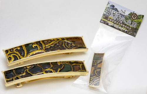 旧池田氏庭園洋館で使用されている金唐革紙を使ったオリジナルバレッタです。