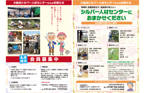 大仙市シルバー人材センターの会員募集とお仕事引き受けのご案内チラシのデザインを担当しました。