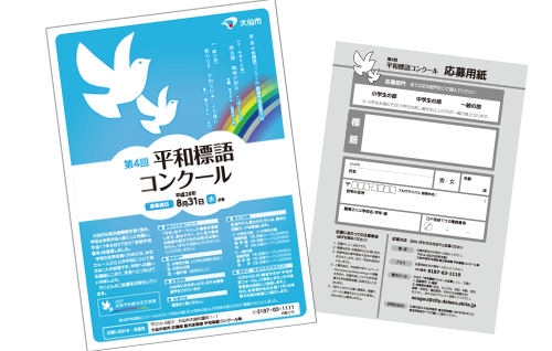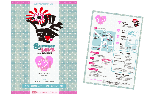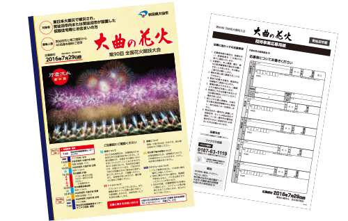 岩手県宮古市、大槌町、宮城県気仙沼市、南三陸町にお住いで東日本大震災で被災または罹災された方を大曲の花火に招待する事業の周知チラシ・応募用紙のデザインを担当しました。