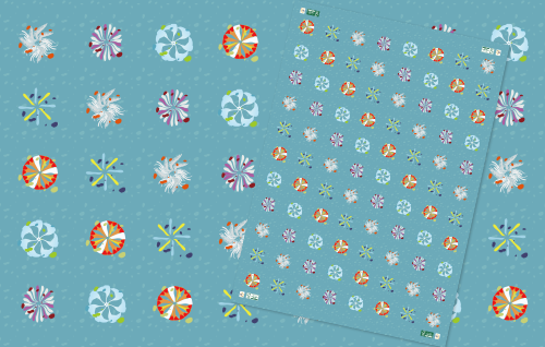 環境に優しいFSC認証を取得した紙を使用した「花火グラス」専用包装紙。「花火グラス」をイメージしたイラストの作成を含め、包装紙のデザインを担当しました。