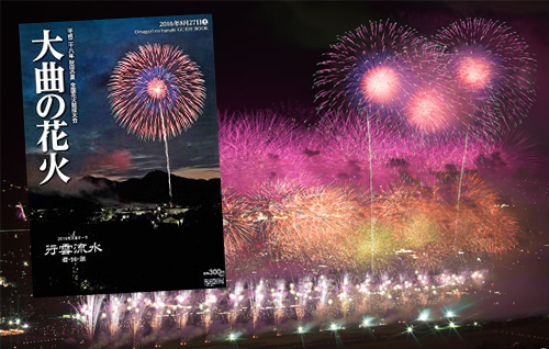 精巧堂出版の大曲の花火ガイドブック2016。表紙写真、大会提供花火の写真など6点を提供しています。